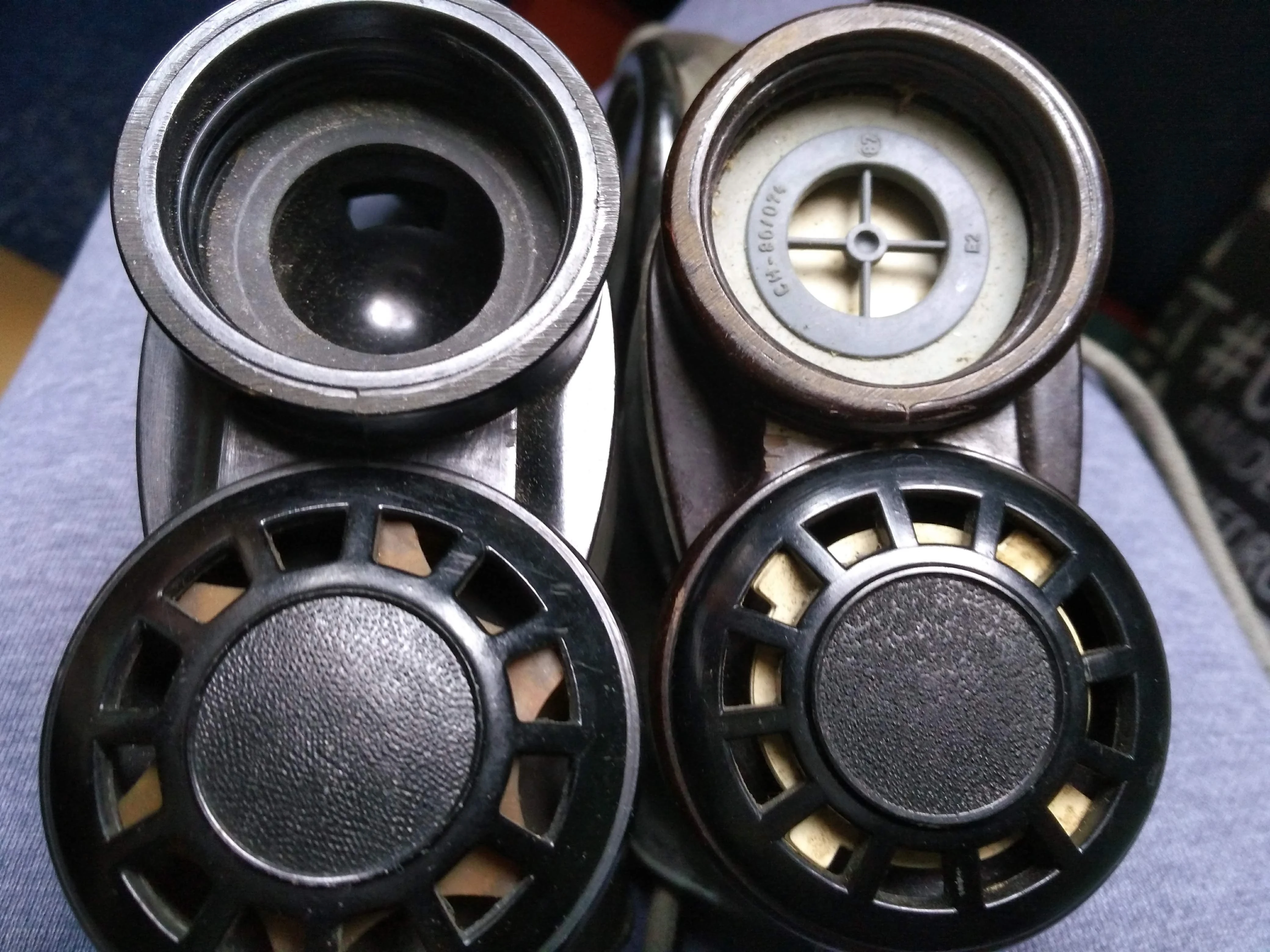 It would appear that during the mid-life update, most of the valve assembly was removed and replaced. The aging exhale valves were removed and replaced with newer ones and the mask received a new intake valve assembly, this one done to ensure compatibility with newer models of filter, chiefly the MOF series. When comparing the CO-1 and CO-1/R valve assembly side by side, it would appear the CO-1s intake threading is longer (see comparison photo).