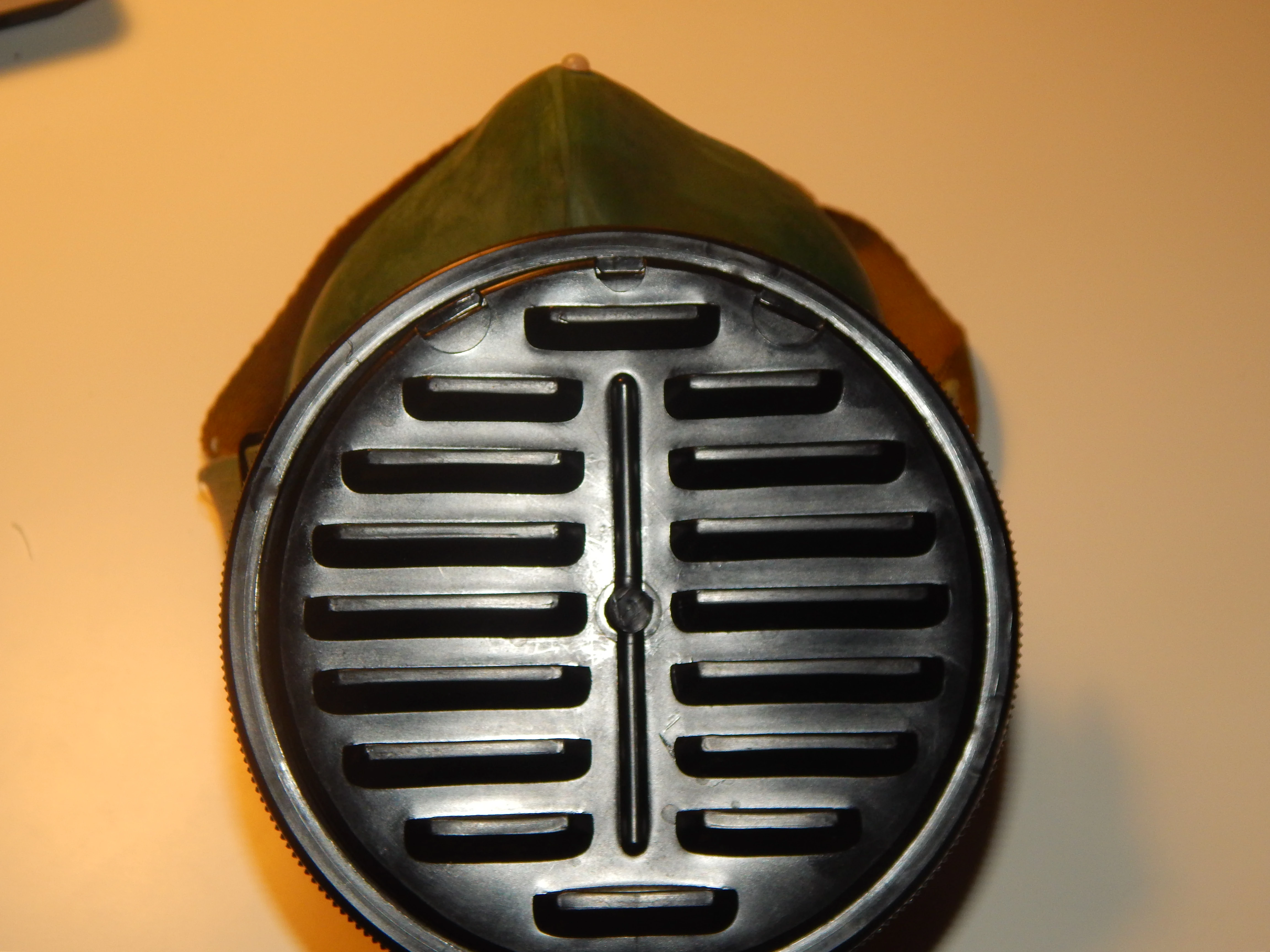 The half mask uses the RP-7 half mask base. The same base was used with the RU60m half face mask. It uses green rubber, and features a head basket head strap. It uses a PMG style outlet valve. The mask features 3 hooks that are used to attach a sweat cloth, that will make wearing more comfortable, but somewhat damaging the seal.