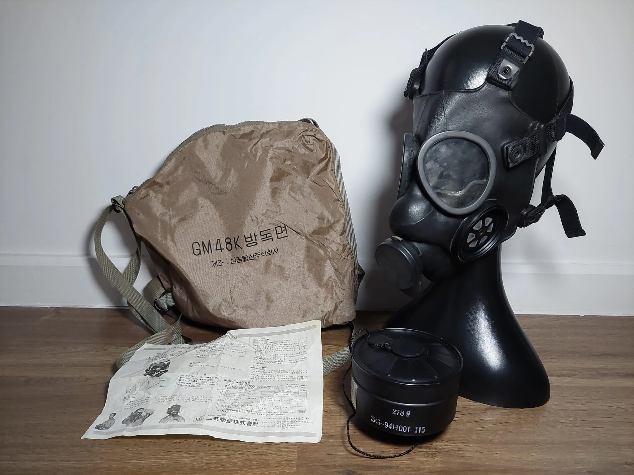 The GM-48K was a gas mask made by Samgong. The facepiece bears resemblance to the Japanese Type 2. Has a KSM 6674 mark which is for industrial gas mask. (In South Korea) Could be a copy of GM-48 which is industrial version of JSDF type 2.