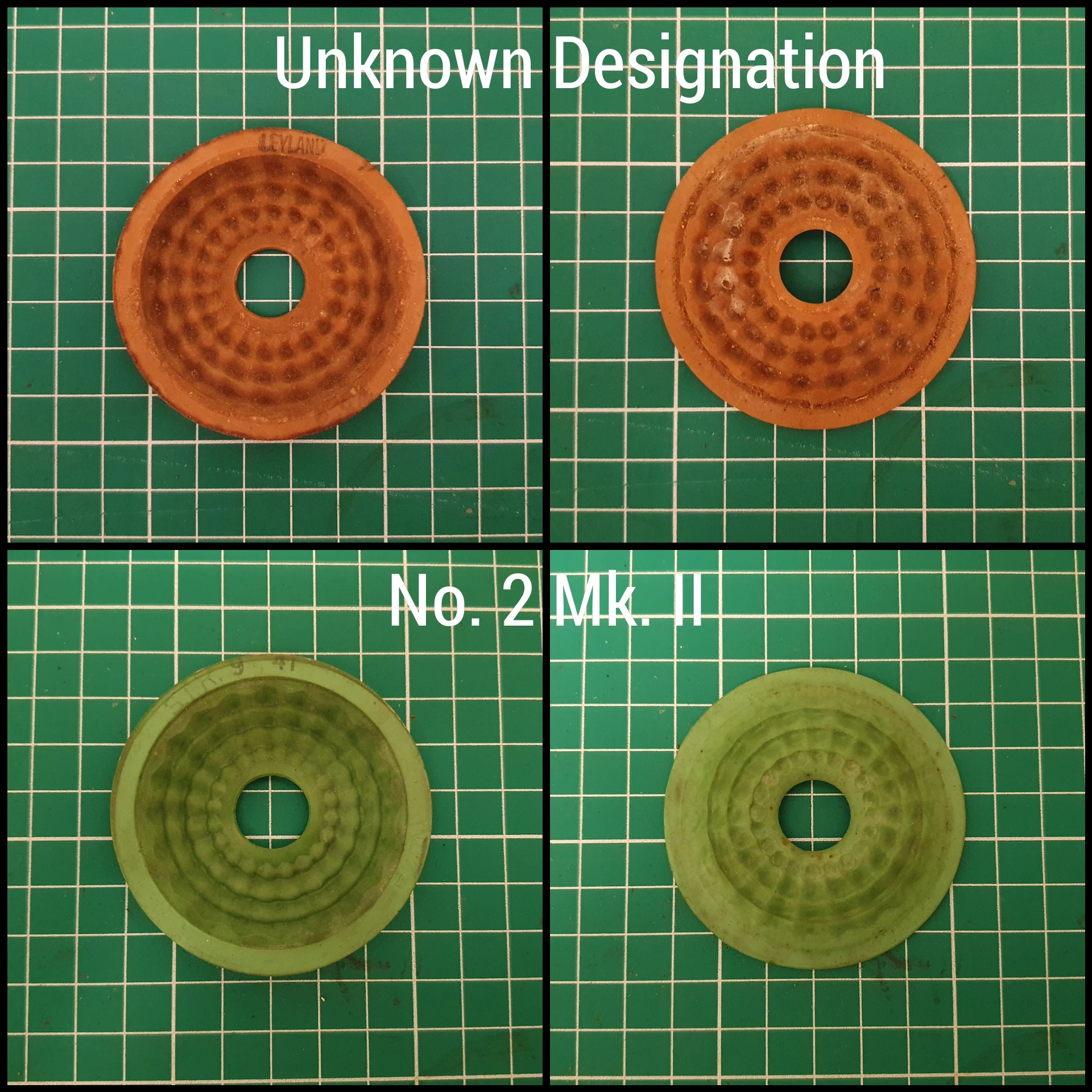 Though No. 2 Mk. II appears to be the only well-known type, a type with a slightly deeper depression of the rubber, and with a slightly stiffer rubber does exist. This type is marked with a later and a two-digit number and has only been found with early 1930s dates. It should be noted that the earlier types were replaced with No. 2 Mk. II valves when undergoing repair during the war, meaning it is possible to find this type most likely only on interwar dated facepieces which did not serve or undergo repairs.