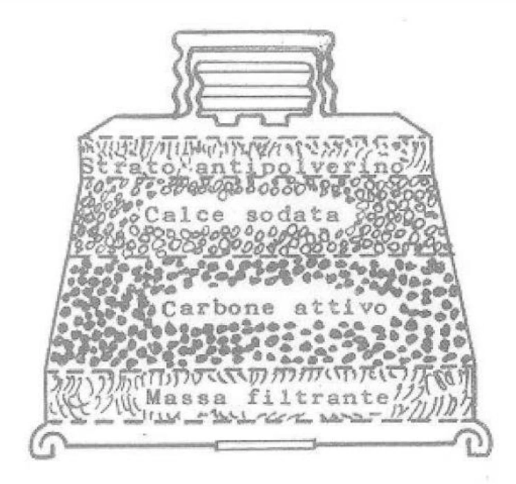 - A layer of filtering, to protect against fumes and arsines, composed of a disc of pressed wool soaked in a solution of alcohol and benzol with the following compounds: bakelite (28,3%), colophony (66%), ethyl phthalate (4,7%), calcium oxide (1%)